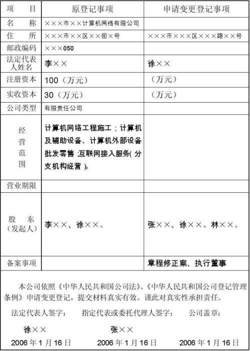 4、領(lǐng)取并填寫變更登記申請表,帶上公章,法人章,連同上述資料提交;