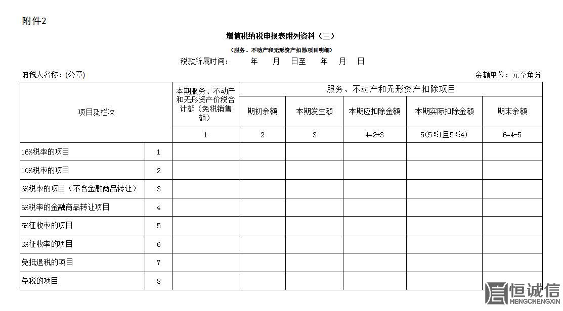 2.《增值稅納稅申報表附列資料(三)》(服務、不動產(chǎn)和無形資產(chǎn)扣除項目明細)
